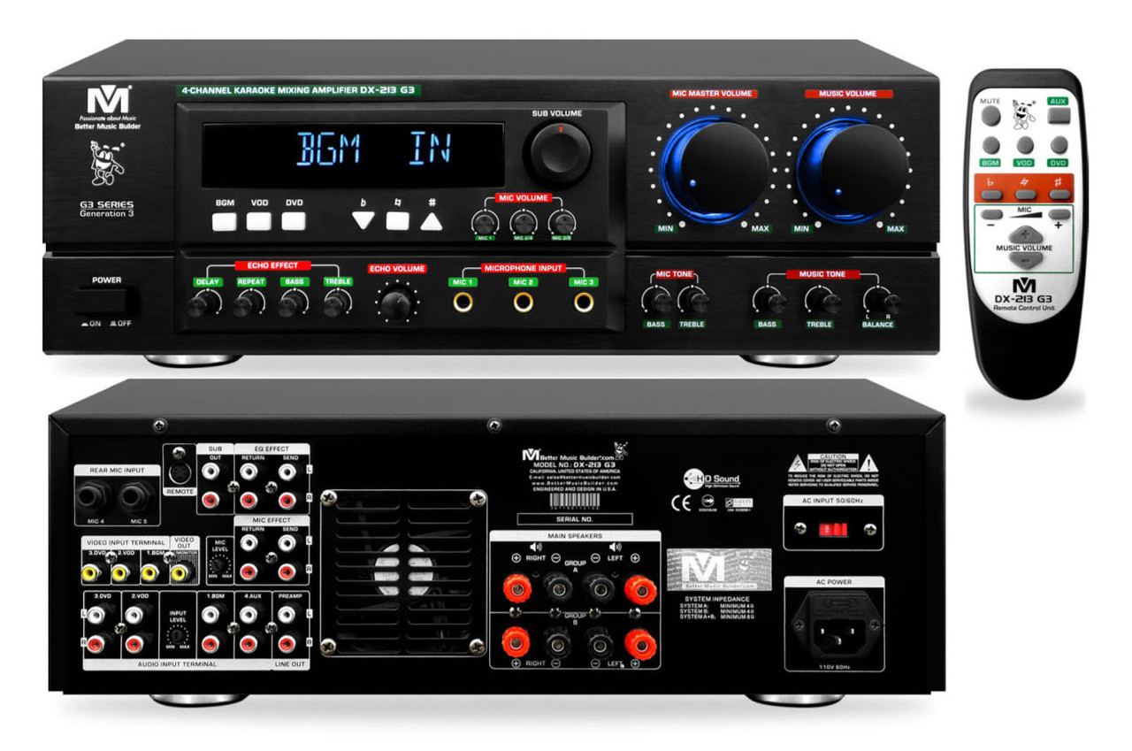 The DX-213 G3 equipped with a 4-pin S-Video plug, the DX-213 G3 is compatible with Karaoke Remote control (sold separately), perfect for use without reaching the amplifier itself. By storing the amplifier in a well ventilated area (e.g. systems room with air ventilation) the amplifier can work at full potential in an appropriate environment, and with the Karaoke Remote compatibility you won’t need to run back and forth adjusting the mixer since it can be controlled by remote.