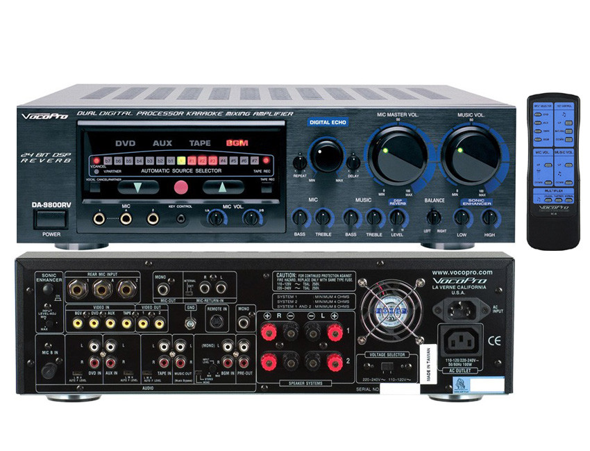 This is the worlds first Karaoke Mixing Amplifier with Dual Digital Processors... The DA-9800 RV combines the already in-demand VocoPro Digital Echo Processor with the new 24-bit VocoPro DSP Reverb Processor. Singers and DJ's can now create the "ideal" vocal sound by blending the Digital Echo effect with the new DSP Reverb, adding a near 3D sound to their Microphone Channels!